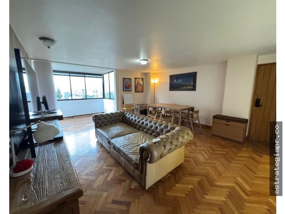 Pesos ColombianosApartamento en arriendo de 101m2, cuenta con 2 habitaciones, la principal con bañera y vestier, las habitación auxiliar con baño y closet, 1 baños social, cocina amplia y moderna, cuenta con una amplia sala comedor, zona de ropas,2 parqueaderos.