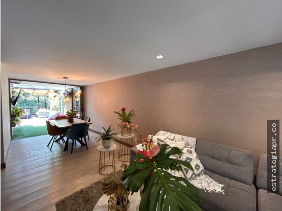 Pesos ColombianosApartamento de 164m2 + 45m2 de terraza con deck y pérgola + jardín, ubicada en Envigado, cuenta con sala y comedor independientes, cocina integral , 3 habitaciones, 3 baños en total, habitación principal con baño, vestier y balcon, clost de linos, sala de television, cuarto independiente de lavandería / útil, terraza con deck y jardin, 2 parqueaderos cubiertos y 2 descubiertos.