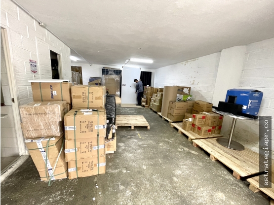 Pesos ColombianosBodega con vitrina para local, cuenta con un área construida de 203 m2 distribuidos en 3 niveles, cada nivel cuenta con baño, puerta camión, 2 parqueaderos de carro y bahía de estacionamiento.