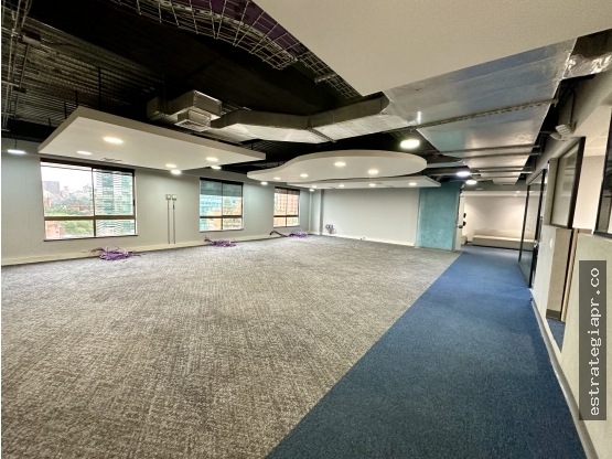 Oficina en Milla de Oro de 431 m2, cuenta con amplios salones, salas de reuniones, baños, cuarto de rack, aire acondicionado, iluminación y 9 parqueaderos.